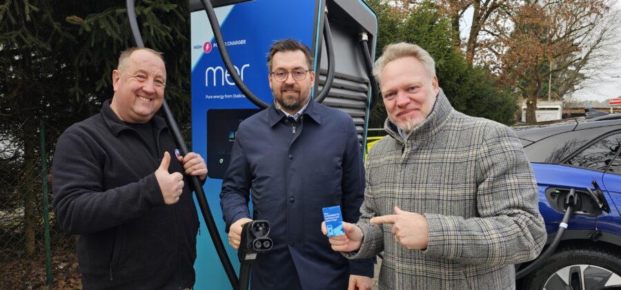 Nutzen Sie die kurze Ladezeit, um das Auto auszusaugen, den Reifendruck zu prüfen oder im Bistro eine köstliche Kaffee-Spezialität zu genießen. Anwesend bei der Eröffnung waren Jens Paulsen (Betreiber), Oliver Borchert (Bürgermeister) und Ulrich Setzermann von Mer Germany.